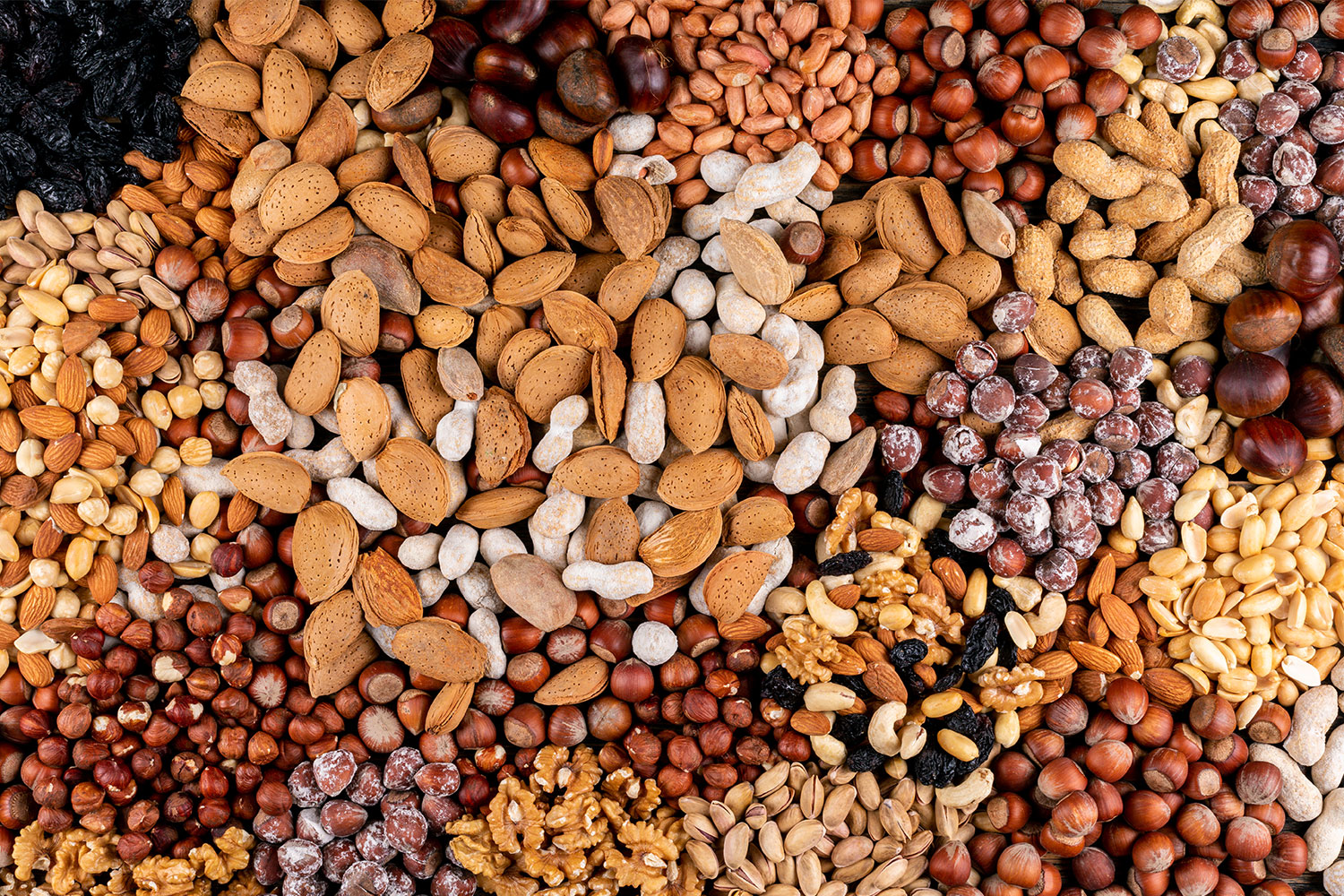 Frutos secos (amêndoas, nozes, avelãs, pistáchios, amendoins*) e sementes (sésamo, linhaça, girassol, abóbora, chia) são alimentos densos em nutrientes. Fornecem proteínas vegetais, gorduras insaturadas, fibra e vários minerais e vitaminas.